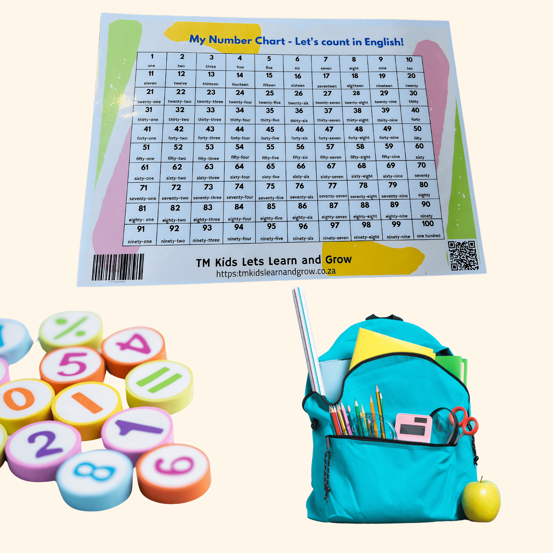 Make learning fun and effective with this vibrant and Essential Numbers and Alphabet Learning Charts Set! Designed for young learners, this set includes: A Number Chart to help children count from 1 to 100 while learning how to spell each number in English. An English Alphabet Chart featuring uppercase and lowercase letters, each paired with…