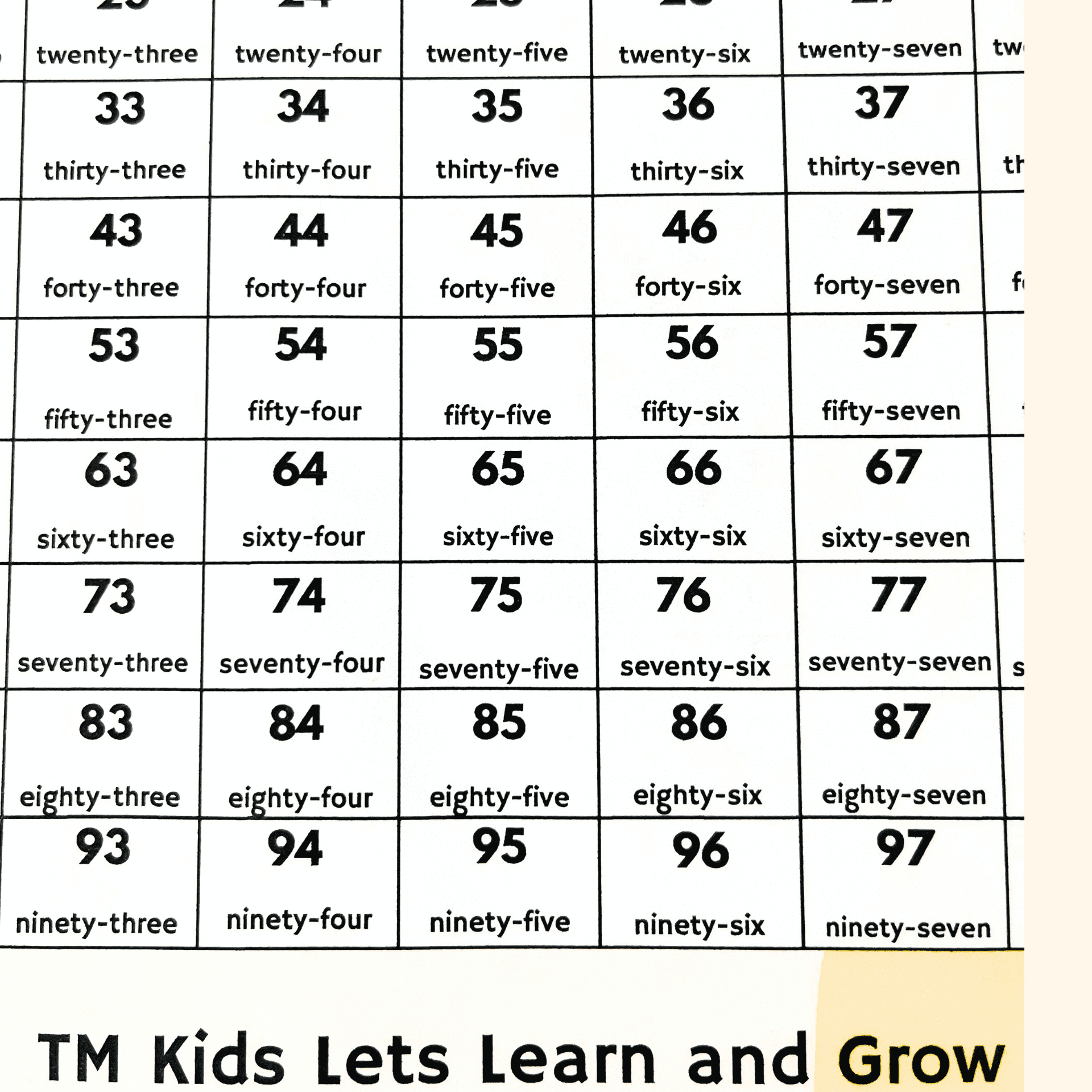 Number Chart: Develops counting, number recognition, and spelling skills.
